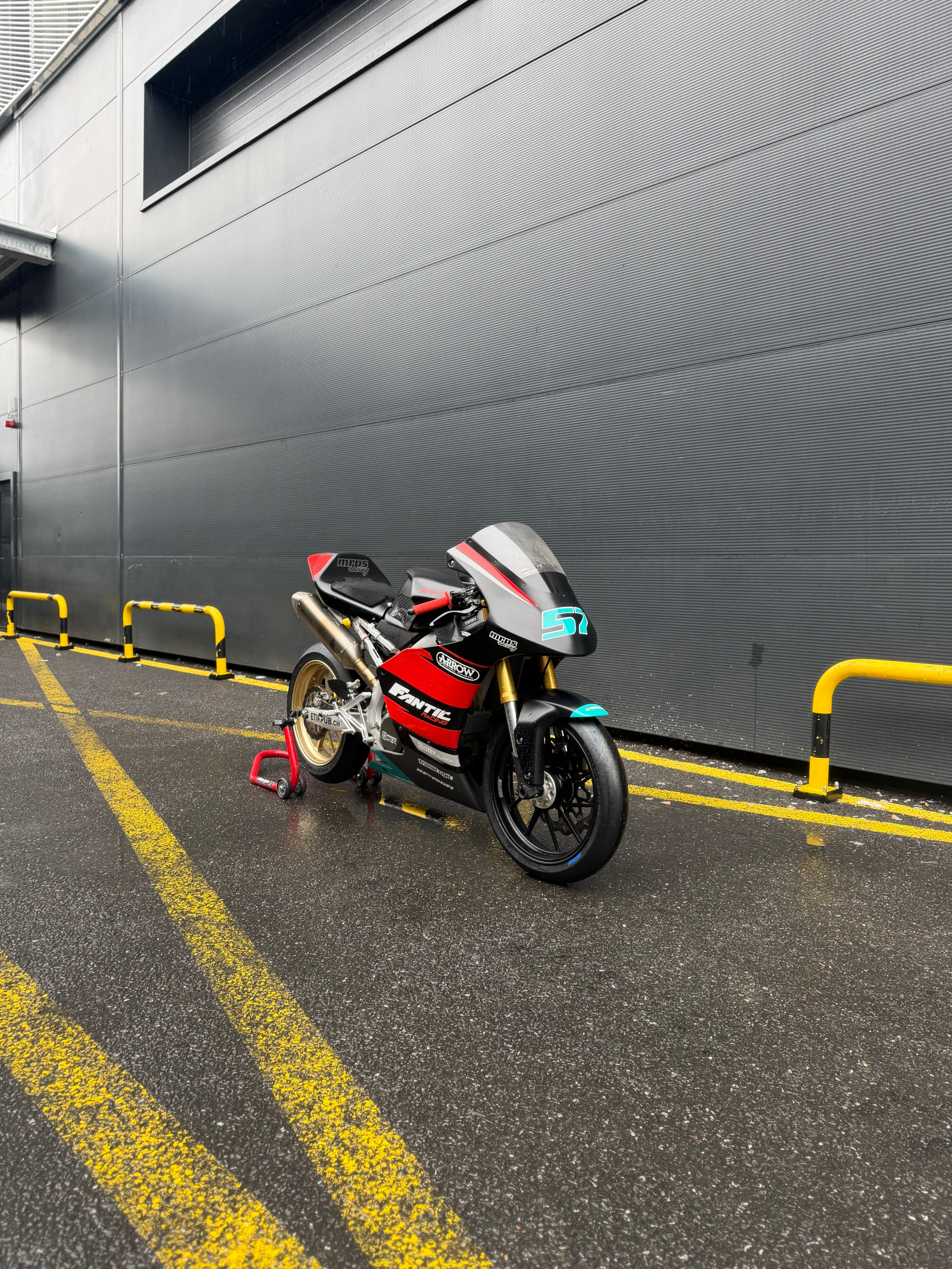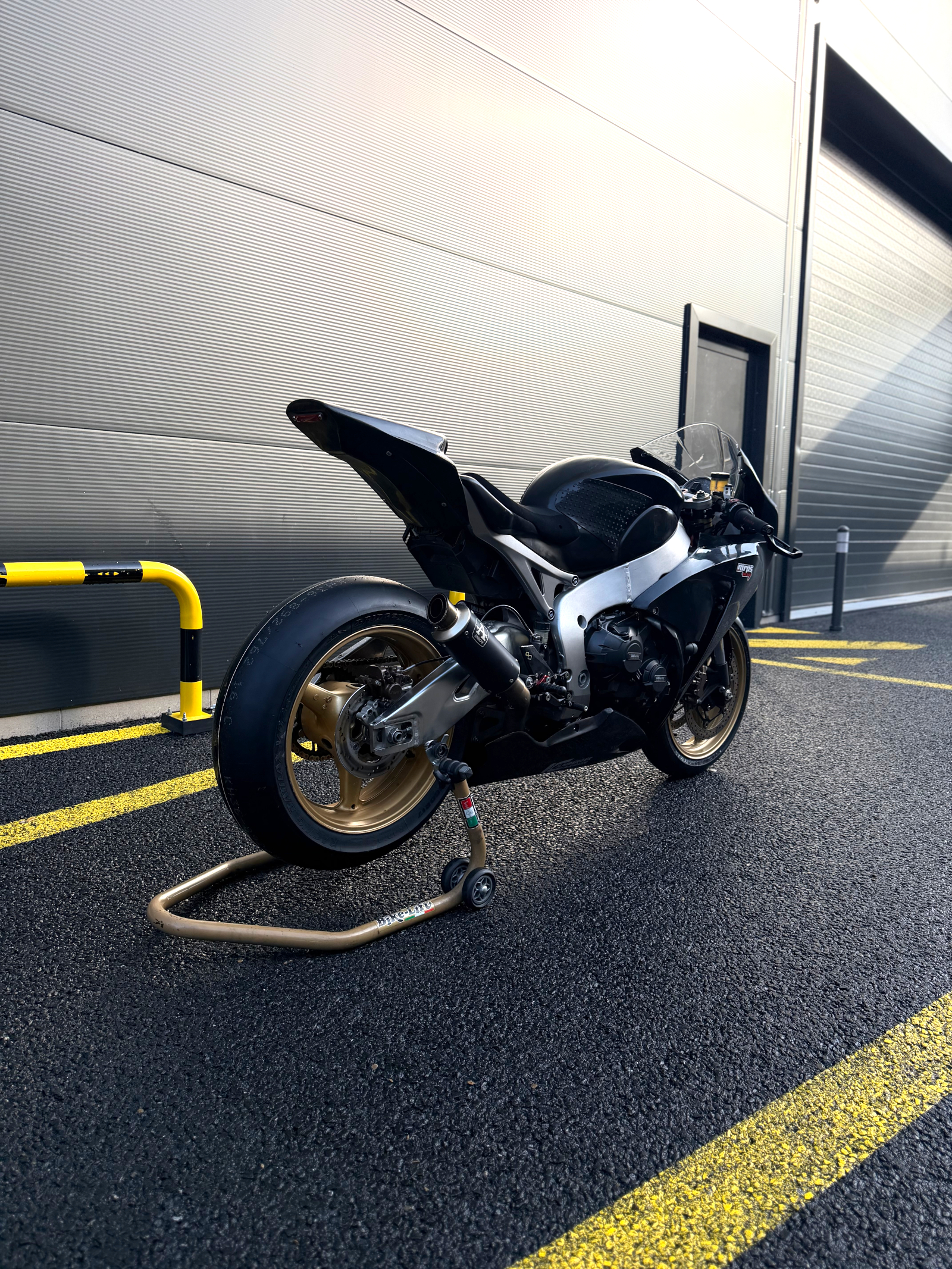 - 4 cylindres 1000cm3 - Quickshifter - Traction Control - Commandes reculées - Indicateur de rapport engagé - Vitesses inversées ou normales - Carénage piste - Protections carters moteur - Maître-cylindre Brembo PR19 - Durites aviation - Plaquettes Brembo racing - Pneus Metzeler Racetec TD Slick / Bridgestone V02